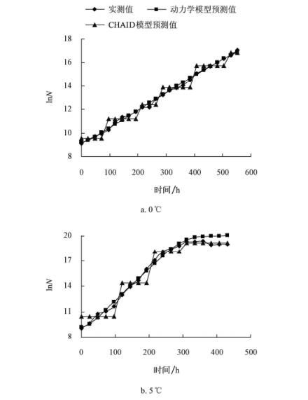 3) CHAID方法模型在预测弧菌稳定期的生长状况时优于传统生长动力学模型,在指数生长期劣于传统生长动力学模型。因此,可以将其与动力学模型进行集成,构建组合预测模型,提高预测的精度。