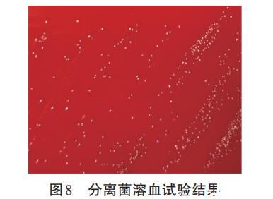 分离菌溶血性测定结果见图8。结果显示,G1未产生透明或草绿色溶血环,提示该菌株不具有溶血性。