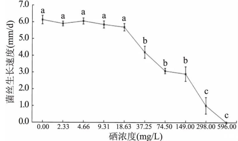 图1硒浓度对粗毛纤孔菌菌丝生长速度的影响