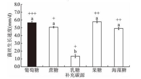 图3补充碳源对粗毛纤孔菌菌丝生长速度的影响
