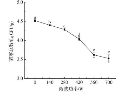 2.1.2 不同微波功率对沙棘果粉菌落总数和色差的影响