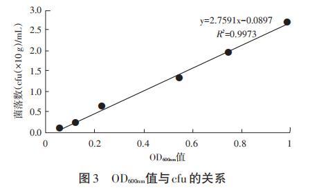 1.2.3菌液OD600nm值与菌落数(cfu)的相关性分析