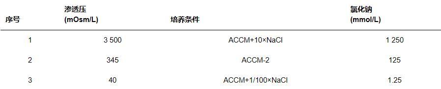 表1渗透压梯度无生命培养基配制条件