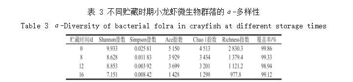 表3不同贮藏时期小龙虾微生物群落的α-多样性