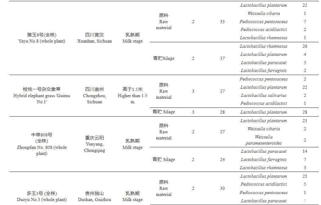 表1青贮前后样品信息及227株乳酸菌鉴定结果、分布详情