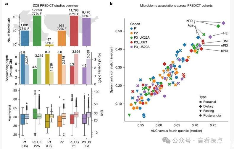 传统肠道微生物研究多局限于小样本队列,统计效力不足,且难以克服地域性生活方式和饮食习惯的偏差。这项研究通过整合ZOE PREDICT项目中五个大型队列的数据,实现了研究规模的质的飞跃。
