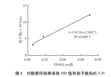 图4对数期环链棒束孢OD值和孢子数量的关系