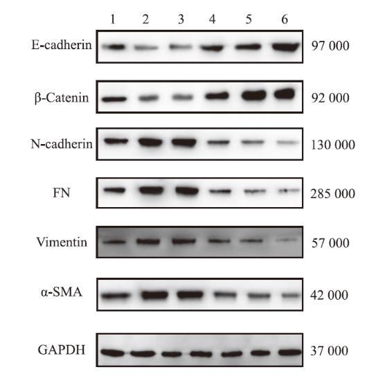 | 组别 | E-cadherin | β-catenin | N-cadherin | FN | Vimentin | α-SMA |