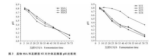 图3 不同底物SSA和发酵液ST对NDF体外发酵液pH的影响