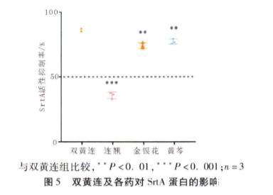 3.5 双黄连及各药对SrtA的抑制作用