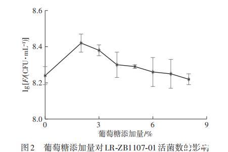 2.2.1 碳源(葡萄糖)添加量对LR-ZB1107-01活菌数的影响