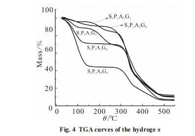 Fig.4 水凝胶的热重分析曲线