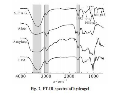 PVA、直链淀粉、芦荟提取物与S1P1A1G1水凝胶的FT-IR谱图见Fig.2。